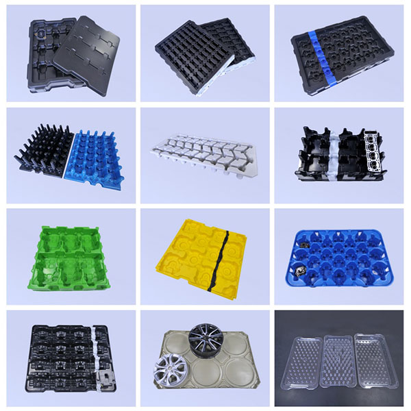 Vacuümgevormde verpakkingen combineren een lichtgewicht constructie, hoge mate van aanpasbaarheid en een goede oppervlakteafwerking, en worden veel gebruikt voor transport en opslagbescherming van motoronderdelen, chassisonderdelen, verlichtingsassemblages, elektronische modules en soortgelijke artikelen.